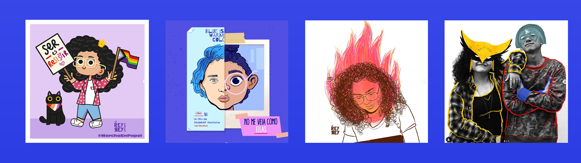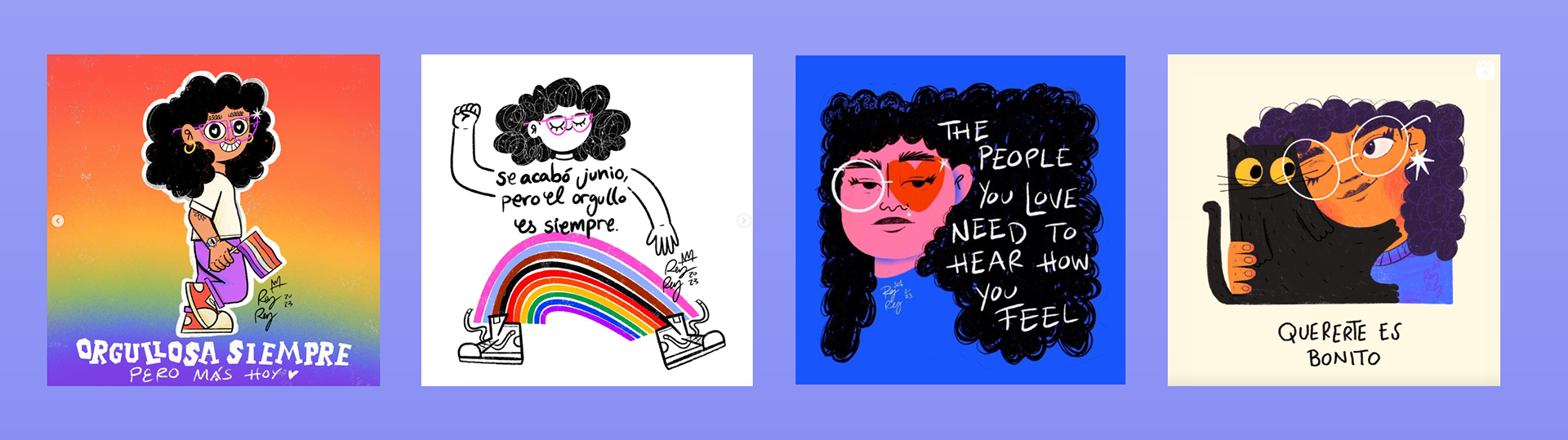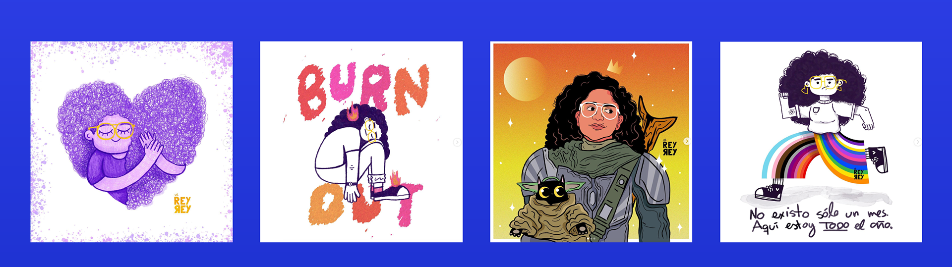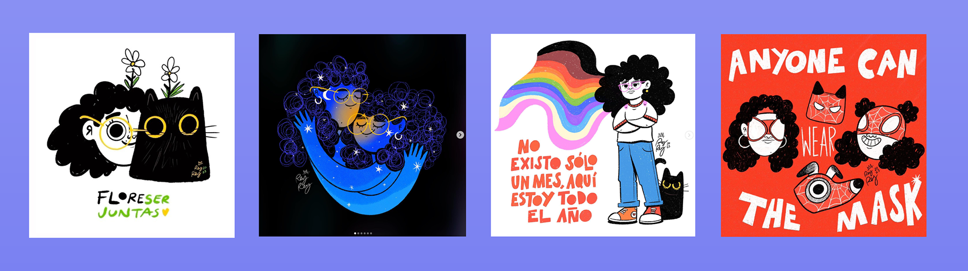 Todos hechos en diferentes técnicas digitales (como Illustrator, Photoshop y Procreate) y/o análogas.
