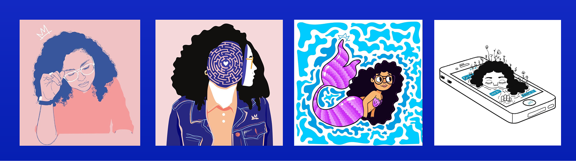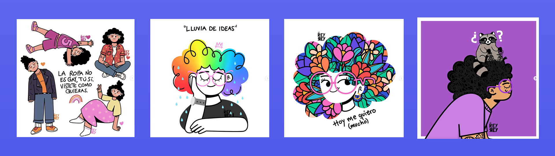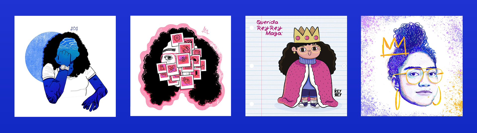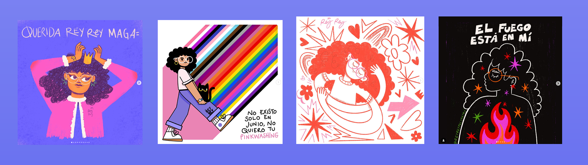 Todos hechos en diferentes técnicas digitales (como Illustrator, Photoshop y Procreate) y/o análogas.