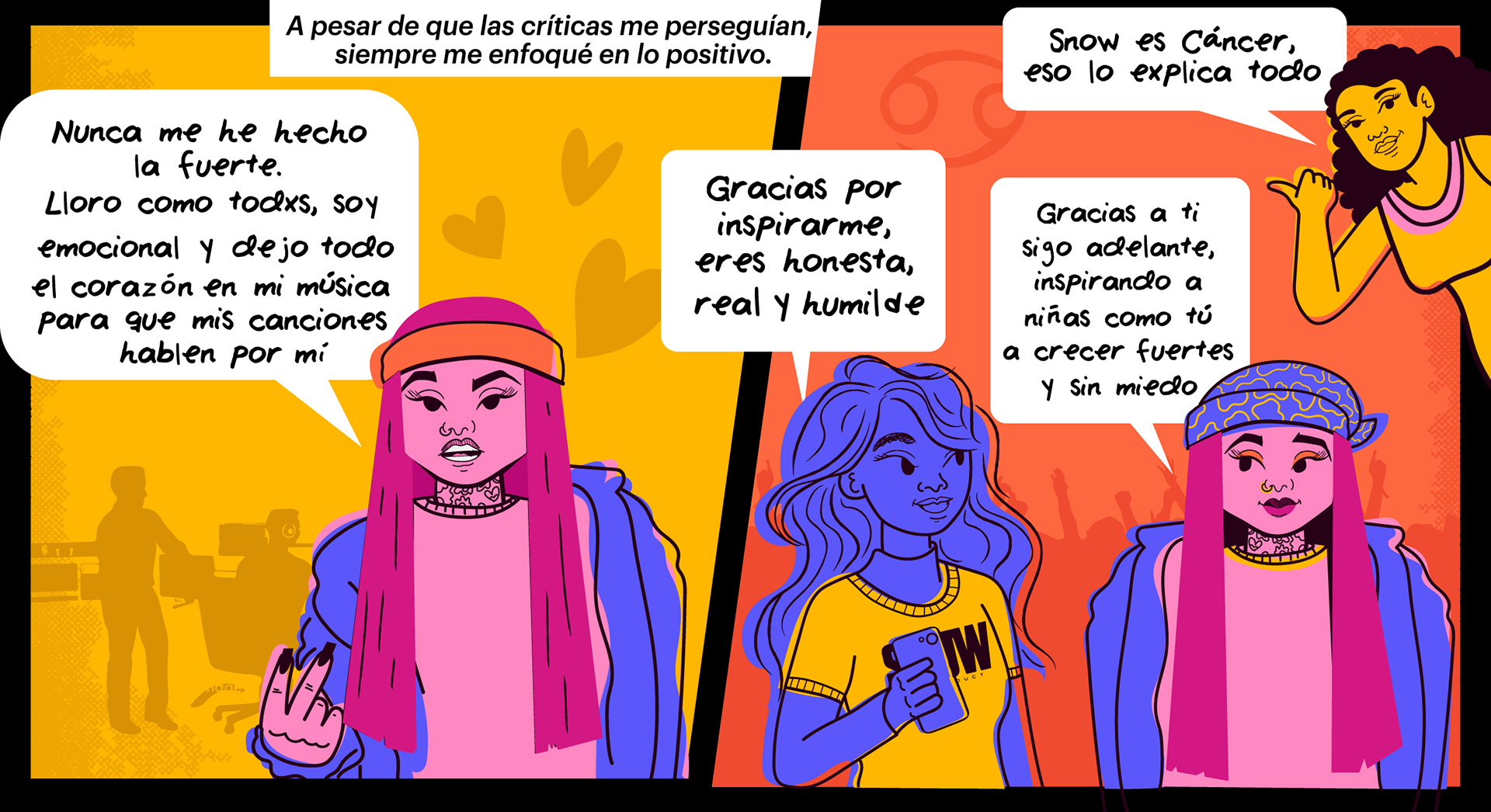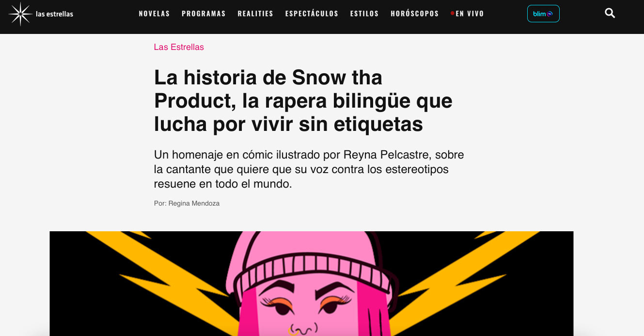 Cómic hecho para Televisa Digital sobre la vida y carrera de la cantante Snow tha Product