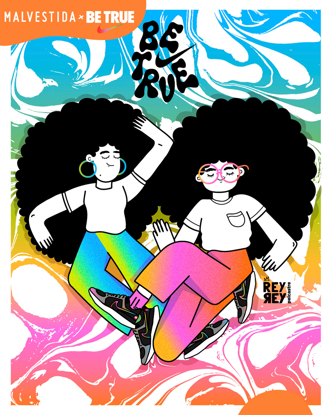 Postal para MALVESTIDA + NIKE para la campaña de Pride 2021 #BeTrue