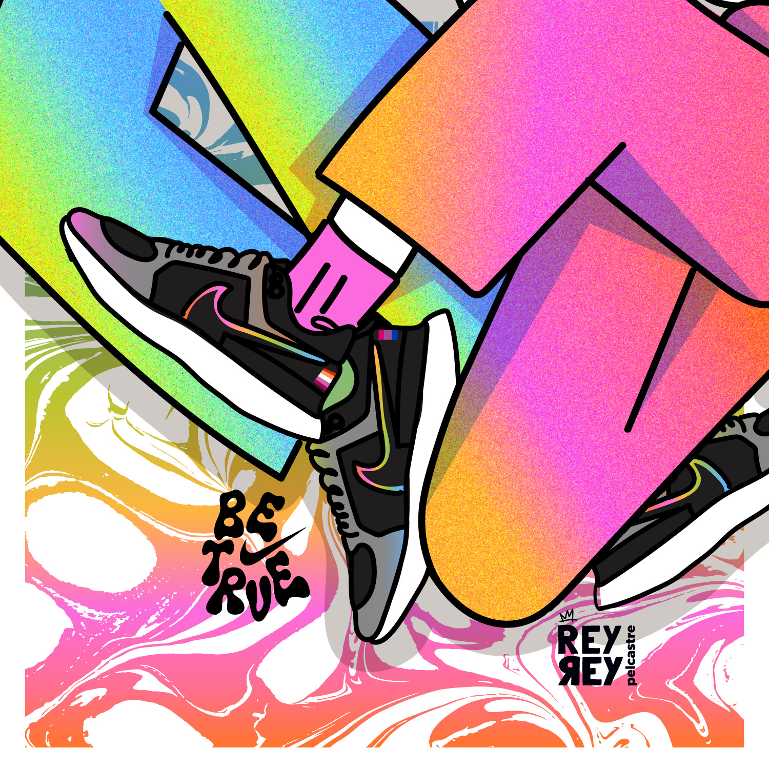 Postal ilustrada para la campaña de Pride de Malvestida + Nike #MueveteConOrgullo #BeTrue